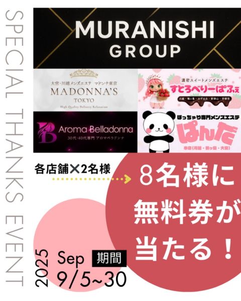 | 当店について | 川越・鶴ヶ島・大宮エリアにて毎日営業中!むらにしグループが新たなブランドを立ち上げ!その名も「ぱんだ」!ぽっちゃり専門メンズエステです!ルーム型&出張型の二刀流でお客様のハートをわしづかみしちゃいます🐼 |